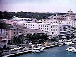 Ok, here's the token touristy shot of Nassau, as seen from the ship. We actually did go down into the town, but it was like the world's muggiest shopping mall. Hot, crowded, and generally miserable. It was far more fun to stay on the ship and patrol the bars (top to bottom, there were a lot of them) hoping for glimpses of the guests.